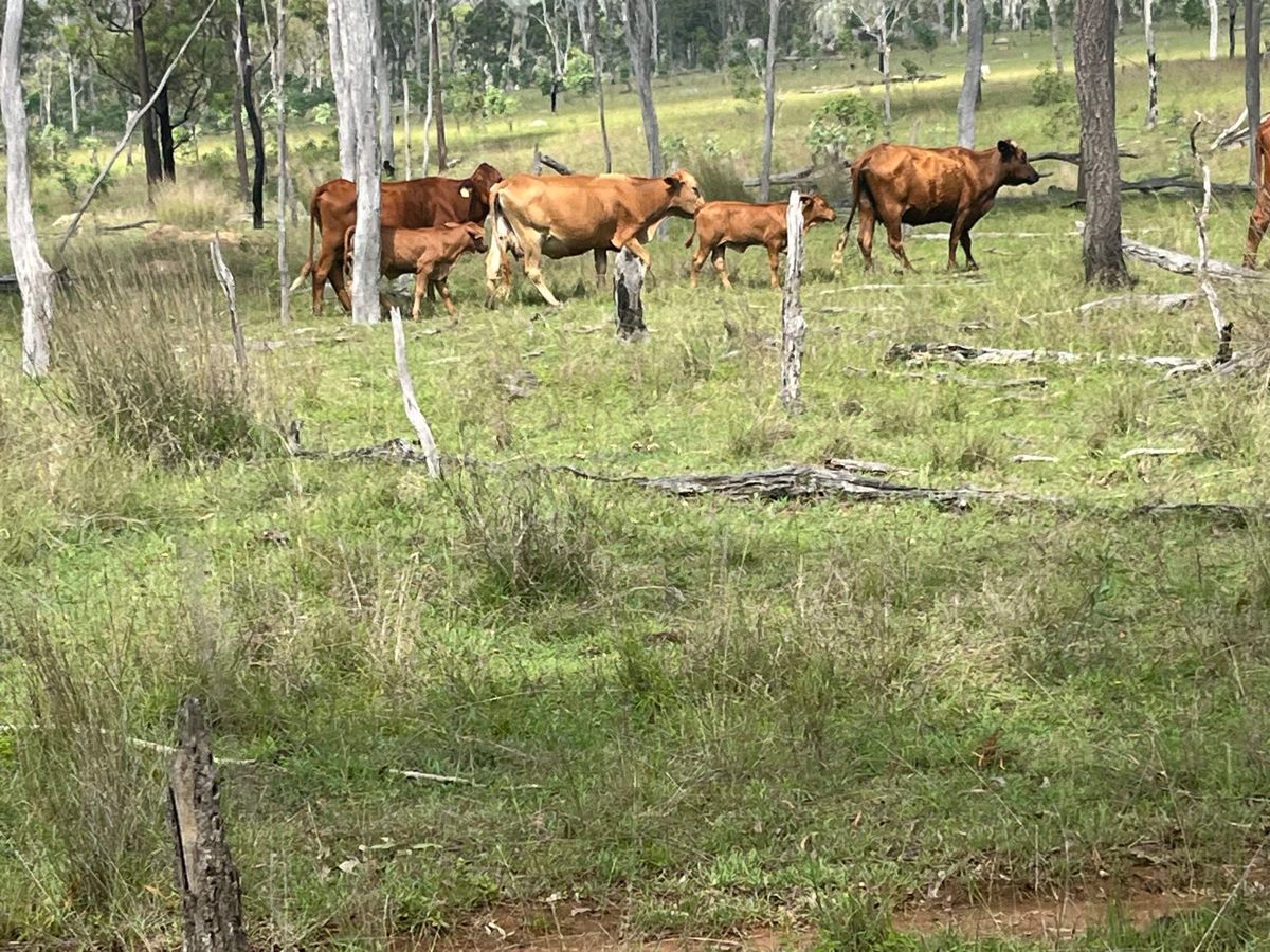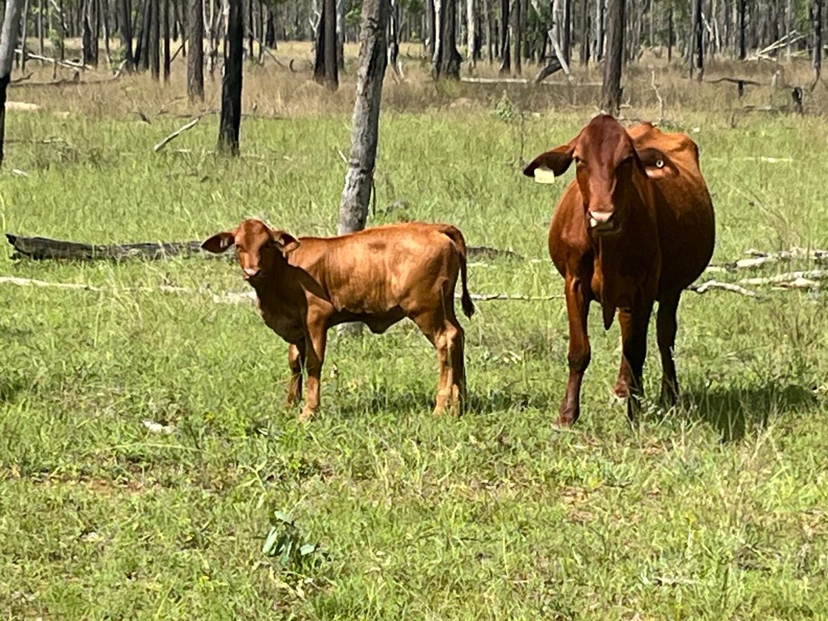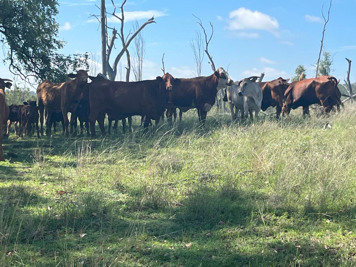 Offering a draft of 10–20 cow-calf units selected from a mob of approximately 40–60. The cows are predominantly Santa Gertrudis cross, Droughtmaster cross, and some Euro-type cattle, ranging in age from 6 to 15 years. They have been running back with Santa and Black Simmental Bulls. They are currently running on light forest country and are located within a cattle-tick infested area.