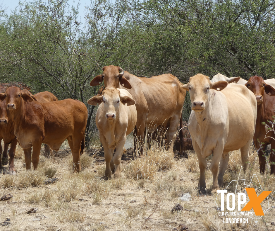 Approx 108 Droughtmaster Cross Cows with approx 108 Droughtmaster Cross calves at foot. The cows are majority medium to large frame and range from 6-8 year old, presenting in forward store condition. From the paddock cows present as approx 95% Crossbred and 5% Brahman cross and look to range in weight from 420-650kg to average approx 530kg. The calves are sired by Rondel Droughtmaster bulls range from 1-8 months with approx 70% branded and marked back in June. These cows have been continuously running with Rondel Droughtmaster Bulls presenting a potential 3 in 1 article. Cattle are located between Kynuna and Julia Creek in clean country.