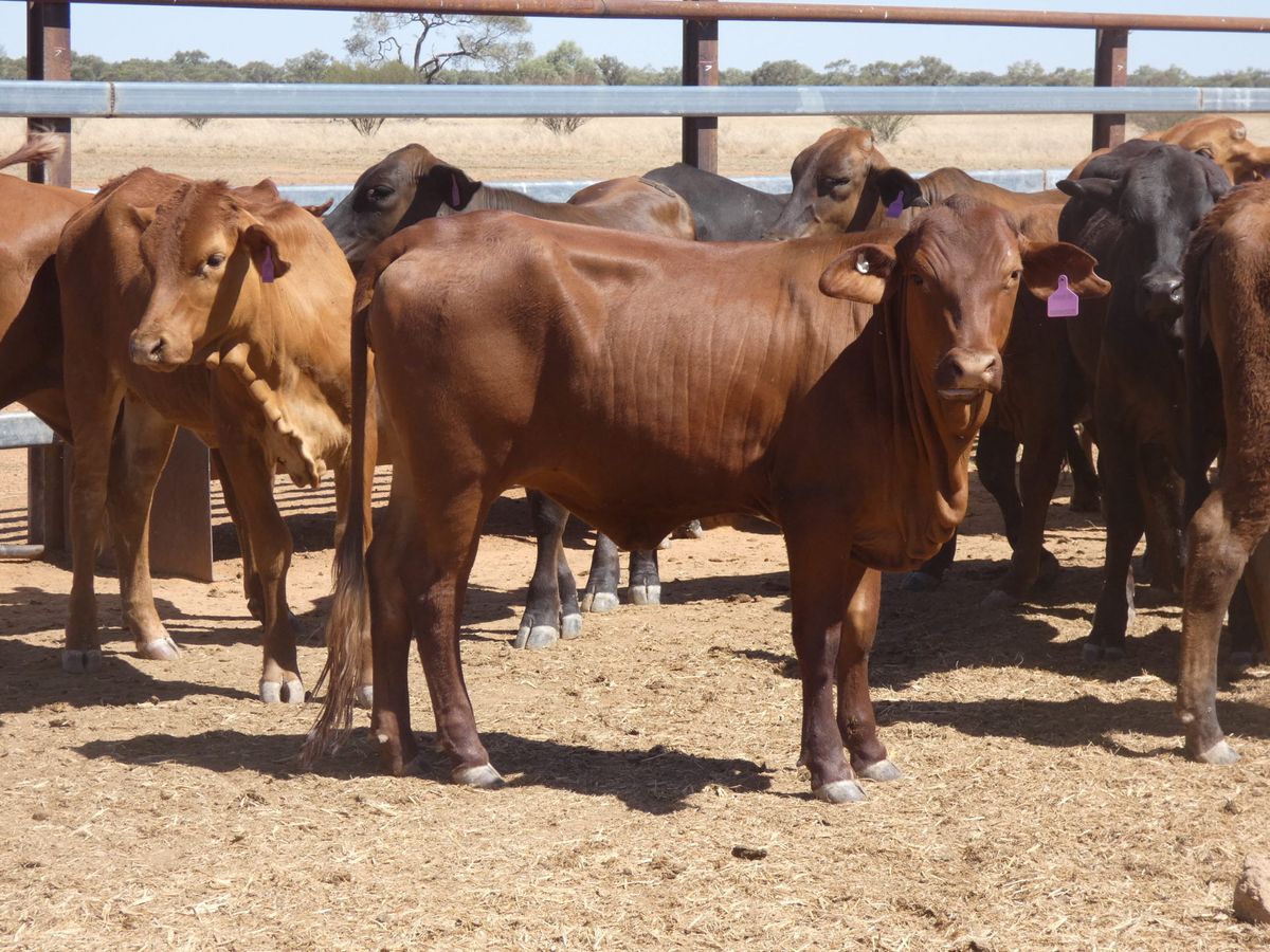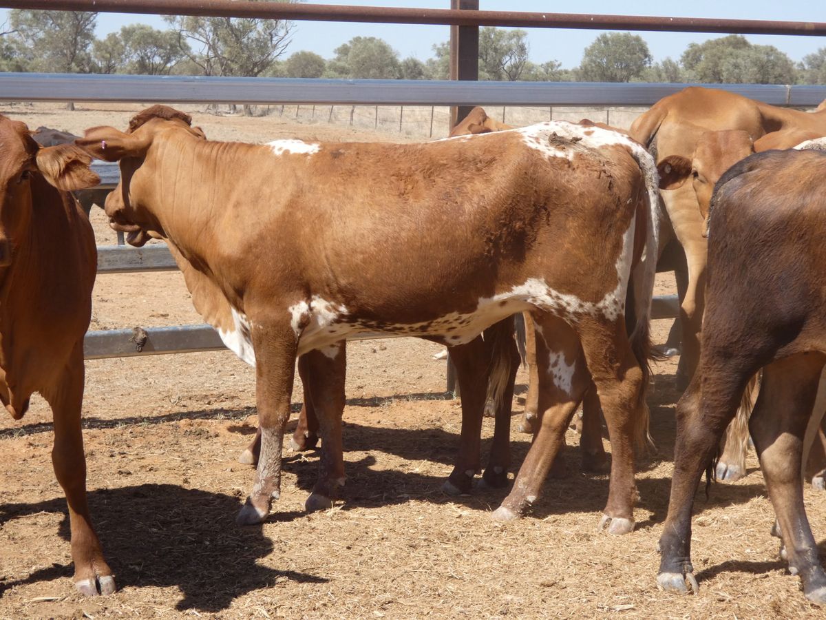 84 VGQ Cross Bred Feeder heifers. These heifers have been bred from medium and large framed cows using good quality, Angus and Droughtmaster Bulls. A percentage of Brahman heifers are bred from bought in cows. Approx. Breed Breakup 33 AngusX, 28 DroughmasterX, 20 Brahman, 4 Charbray. At assessment the heifers weighed from 292-462kg to ave. 374kg. Full. Heifers are all PTE by All Reid (Cloncurry Vet). Ideal heifers for the domestic feedlot or background out heavy feeder market.