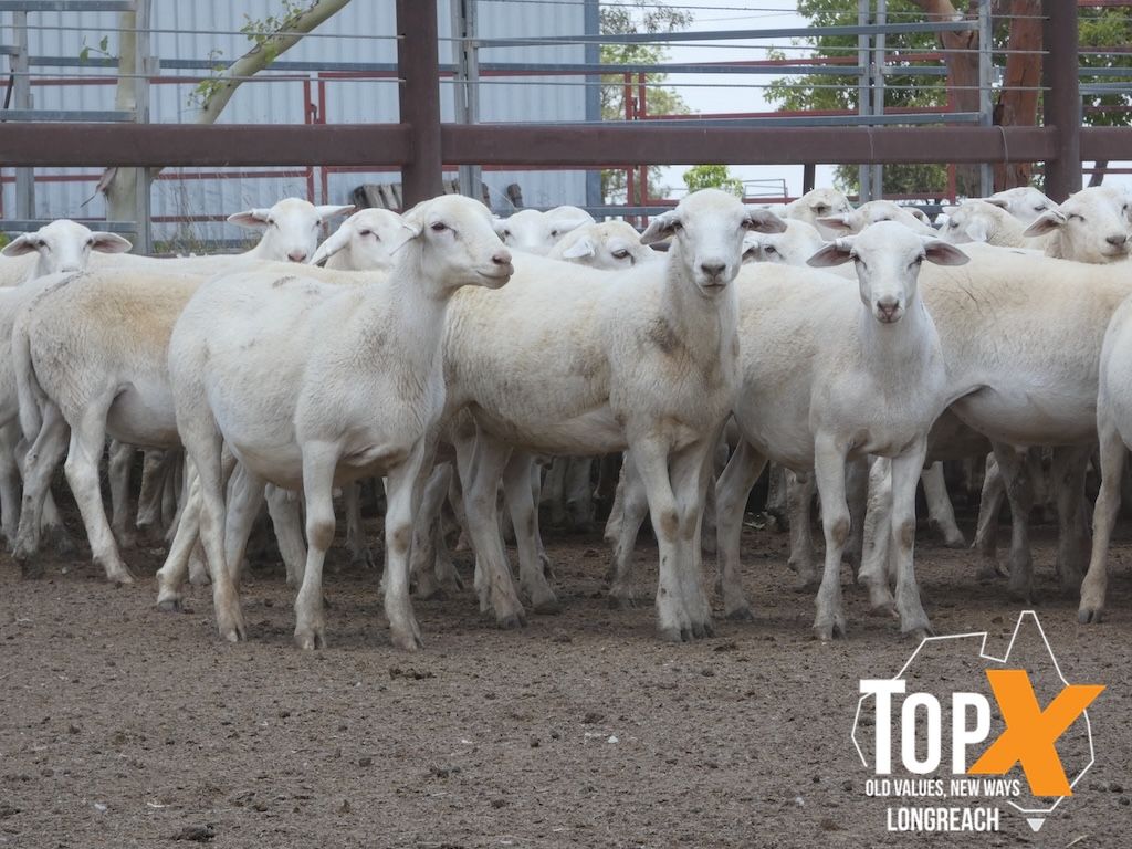 Assessors Comments: Offering 8 decks of 970 Australian White X Wether lambs. These vendor-bred lambs are sired by Tattykeel and Keilah Australian White rams, out of F3 – F5 Australian White/White Dorper ewes. April/June 2025 drop, providing plenty of time and opportunity for finishing on grain or green feed. A sample of 250 lambs weighed between 30kg and 55kg, averaging 41kg straight out of the paddock. These lambs are usually purchased by repeat buyers on AuctionsPlus or sell very well when lined up in saleyards. There are approximately 20hd with black or brown markings. 20 head were mouthed and they had very good fresh lambs teeth.